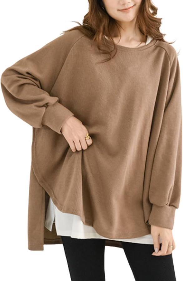 「スリットデザインが一際目を引くチュニック トップス」左右のスリット・前丈&後丈のデザインがおしゃれなレディースの秋冬向けのトップスです。