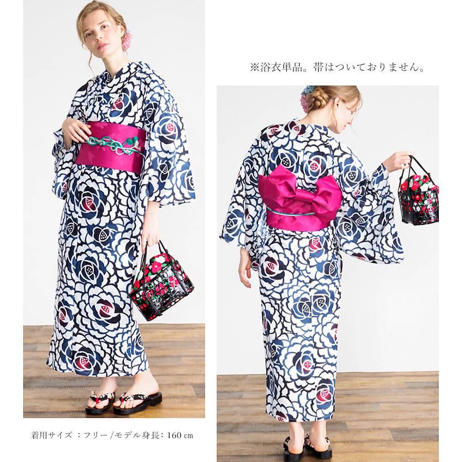 サイズはフリーサイズ(適応身長154~168cm)で、幅広い体型に対応。おしゃれに差をつけたい方におすすめの、今季注目の浴衣です。