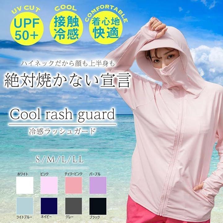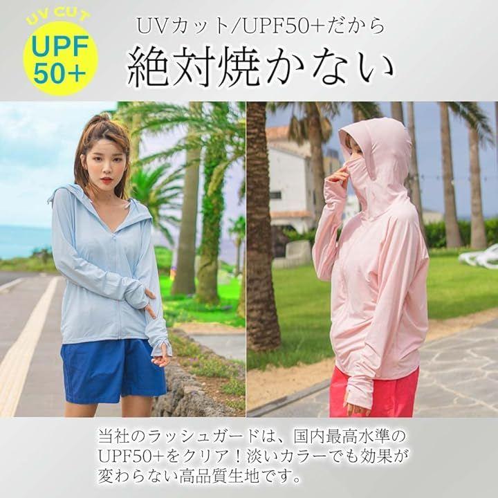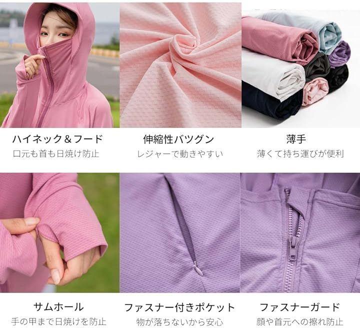 ファスナーを口元まで上げることができ、フードも付いているので首周りの日焼け防止に効果があり、手の甲も日焼け防止が期待できます。