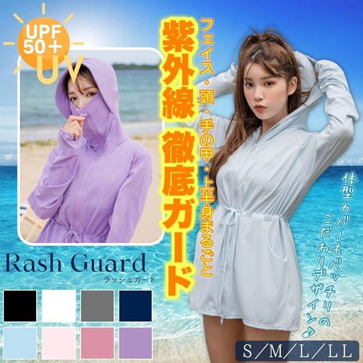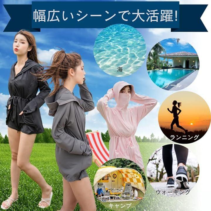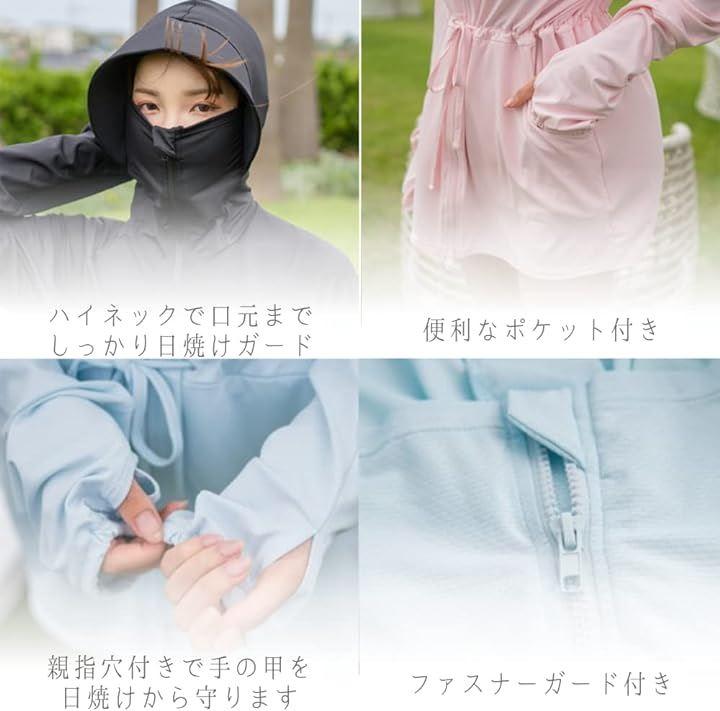 ハイネック+フード付きでお顔を紫外線からしっかりガードします。