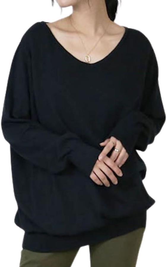 「Vネック ニット レディース 首元 すっきり きれい見え カジュアル トップス」顔まわりを明るく見せるVネックデザインで、デコルテラインをきれいに魅せます。