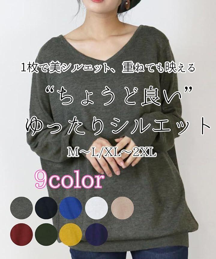 「春 秋 冬 ロングシーズン 活躍 する きれいめ コットン ニット トップス レディース」一枚でも重ね着でも決まる シンプル デザイン。