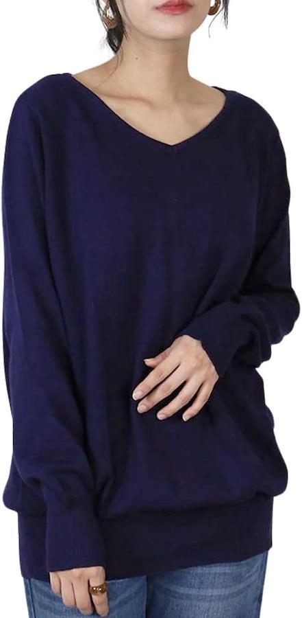 「Vネック ニット レディース 首元 すっきり きれい見え カジュアル トップス」顔まわりを明るく見せるVネックデザインで、デコルテラインをきれいに魅せます。