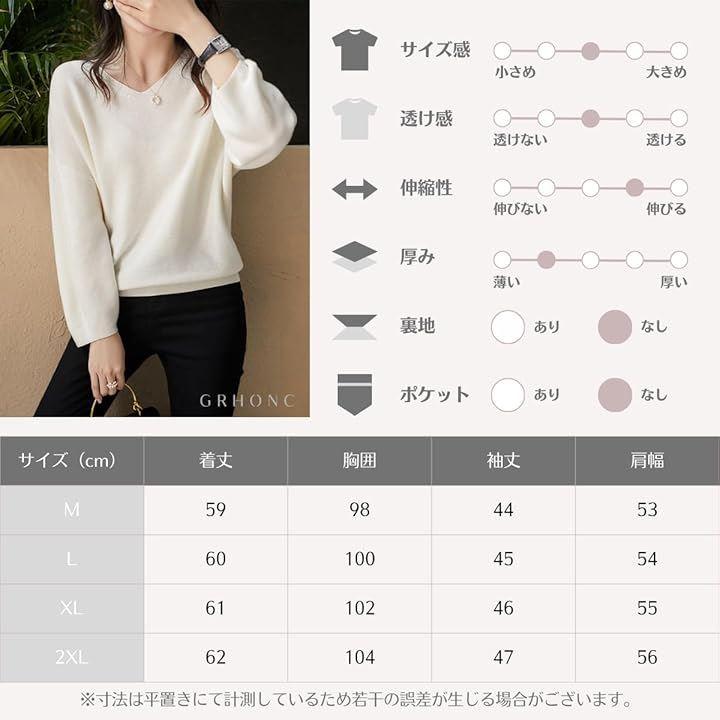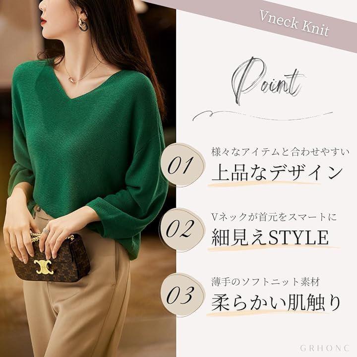 「商品特徴」ナチュラルな雰囲気とゆったりとしたシルエットが特徴のVネックニット。