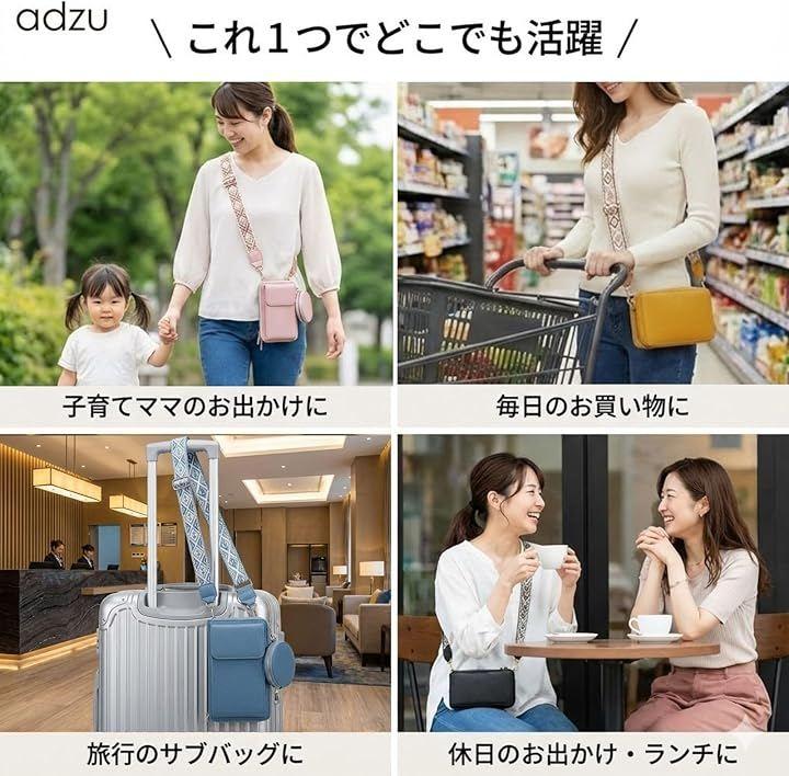 ストラップは長さ調節ができ、肩掛け・斜めがけの使い分けがしやすい設計です。
