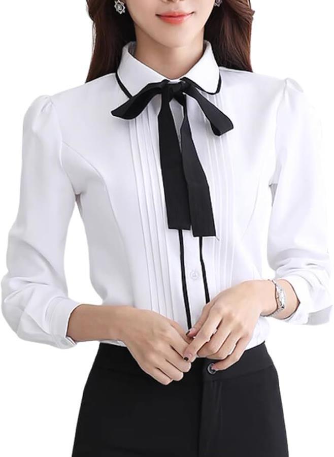 襟付きブラウスとしても、リボン付きブラウスとしても楽しめる2Way仕様で、気分やシーンに応じたスタイルが可能です。
