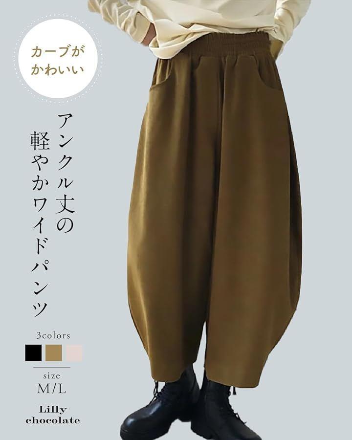 動くたびに揺れるシルエットが女性らしく、カジュアルにも上品にもスタイリングできる1本です。
