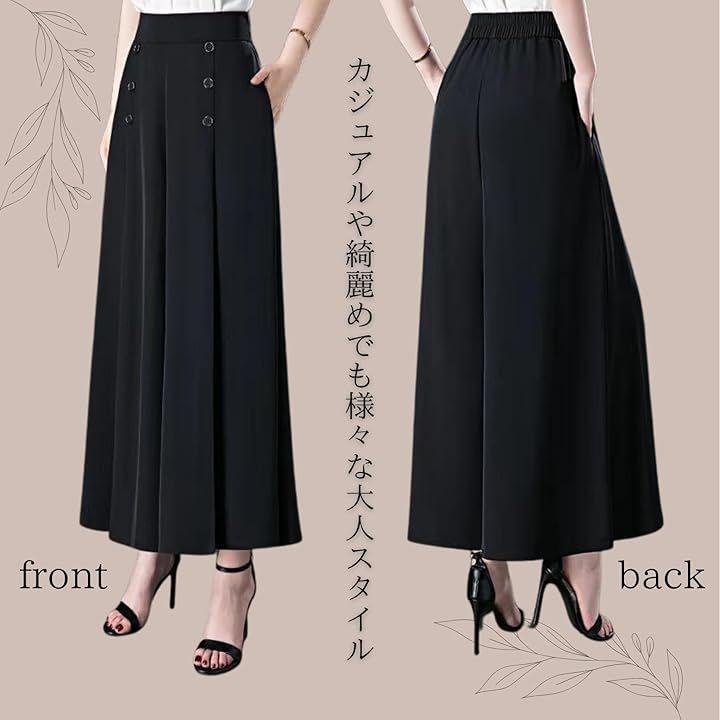 ワイドシルエットが下半身の気になる部分を自然にカバーしながら、上品な大人の女性らしさを演出。