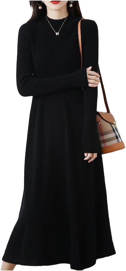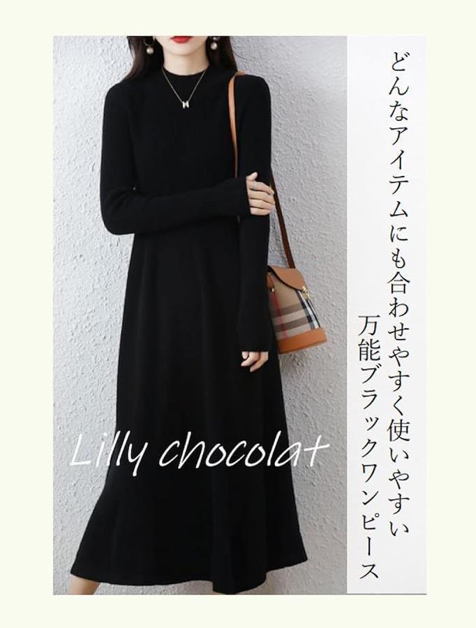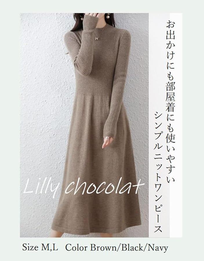 フレアが大人な雰囲気のミモレ丈のニットワンピースになります。