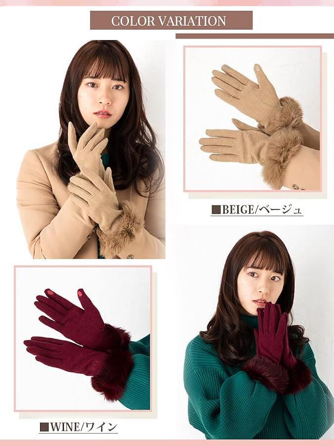ブラック、ダークブラウン、ベージュ、ワイン等コーディネートの差し色になる魅力たくさんの手袋です。