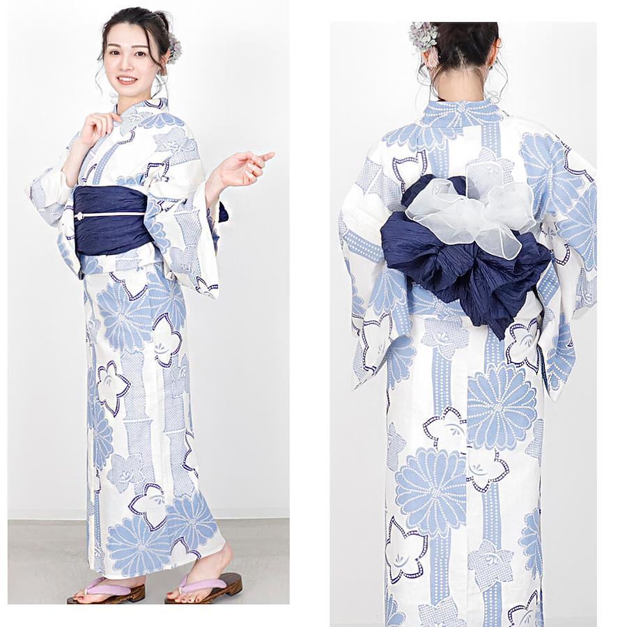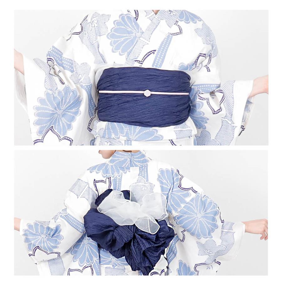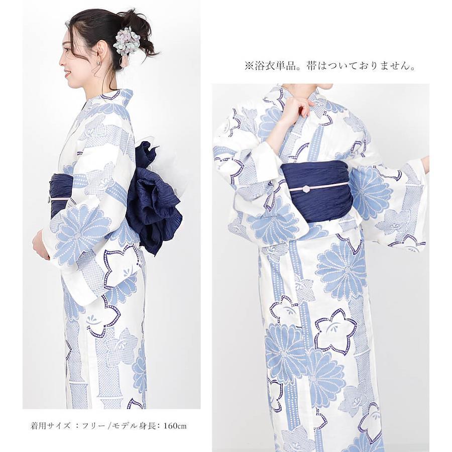 仕立て上がりなので、届いたその日にすぐ着用可能。適度な透け感があるため、ゆかた下スリップなどインナーの着用をおすすめします。サイズはF(フリー)で、適応身長は152cm~167cmと、幅広い体型の方に対応。