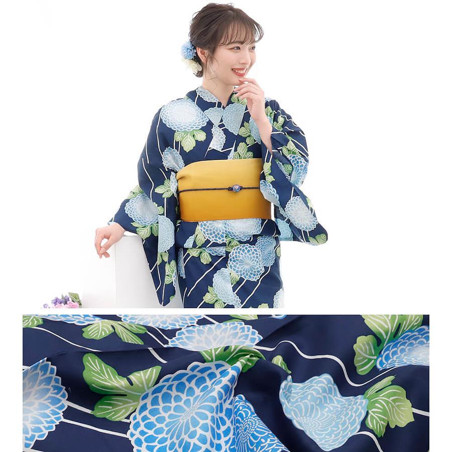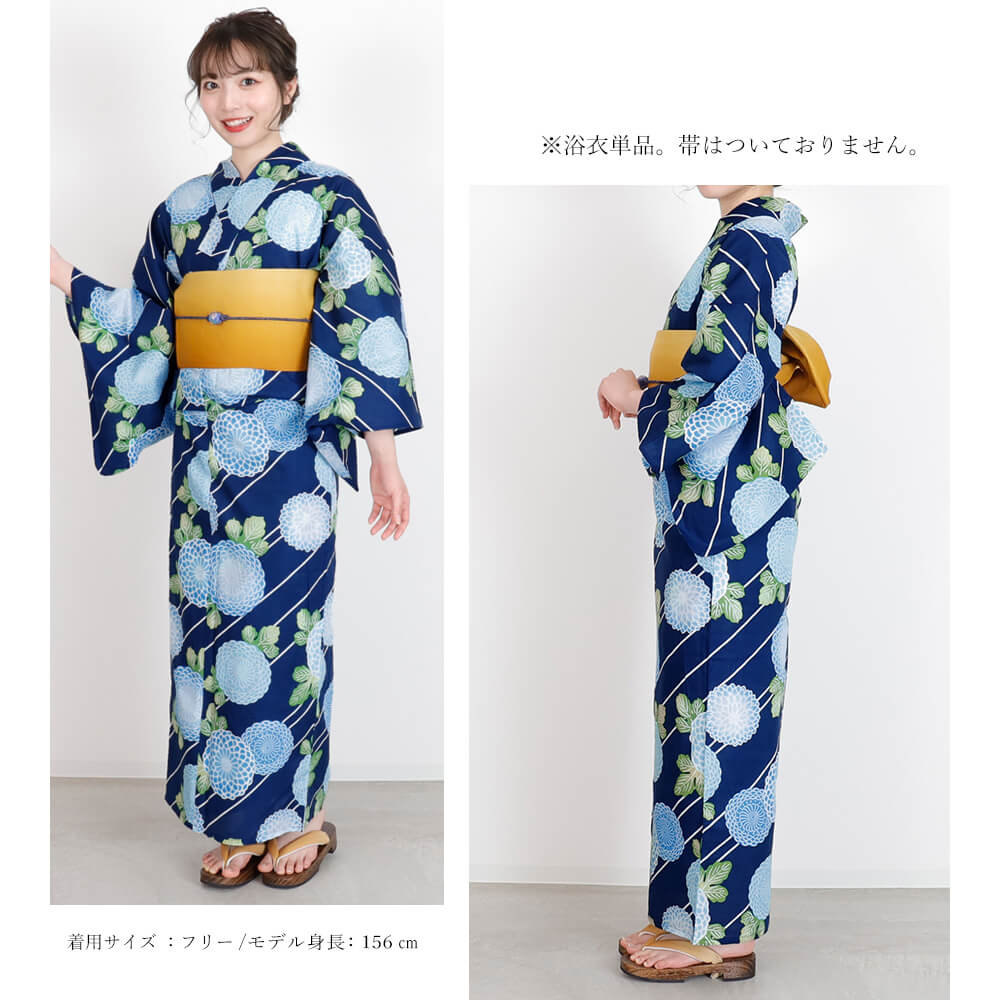 上品な濃紺に映える爽やかな花柄で、大人可愛く夏を彩る綿100%浴衣。涼しさとシャリ感を両立した肌触りの良い仕立て上がり仕様で、届いてすぐに着用OK!初めての浴衣選びにもおすすめ。花火大会や夏祭り、特別な日のおしゃれにぴったりの一枚です。