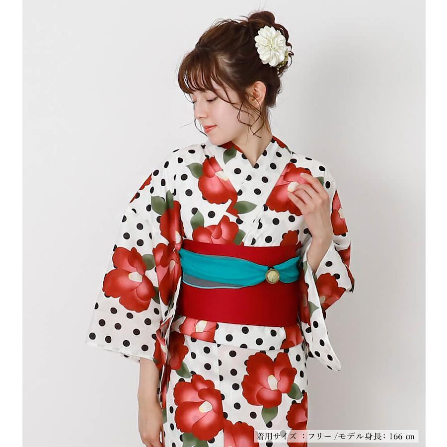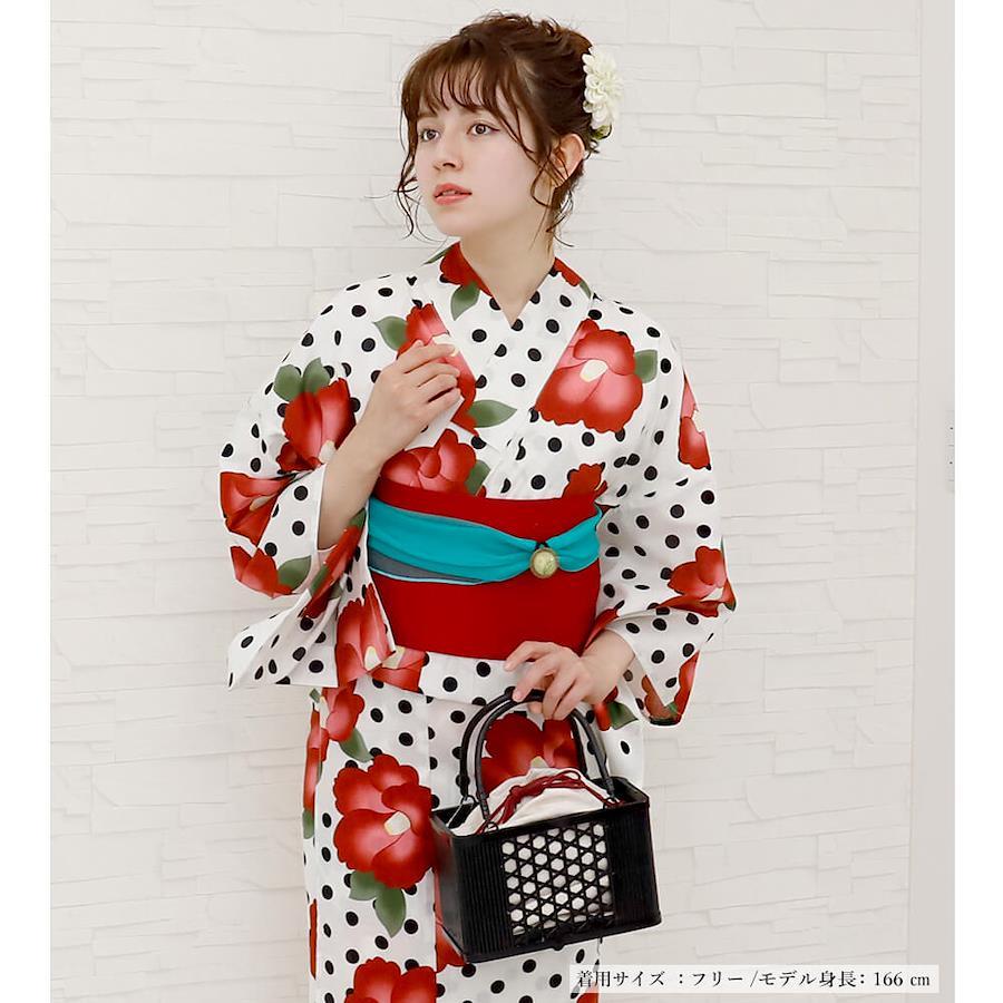 おしゃれに敏感な方や、初めて浴衣を着る方にもおすすめの一枚。大胆でかわいい「水玉模様の椿祭り」で、今年の夏を思いっきり楽しみましょう。