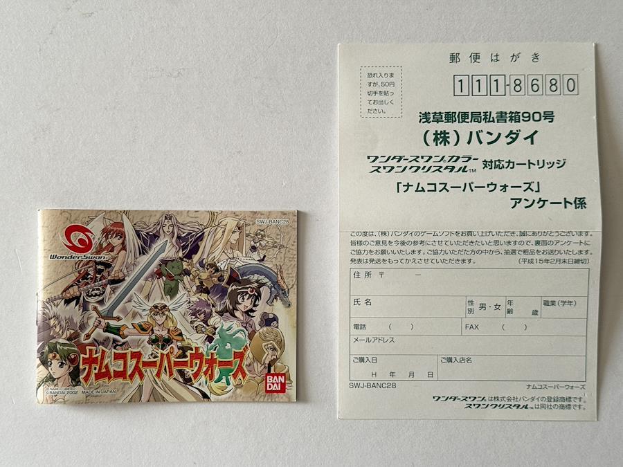 ワンダースワン ナムコスーパーウォーズ ハガキあり カラー クリスタル Wonderswan Color Crystal Namco Super Wars