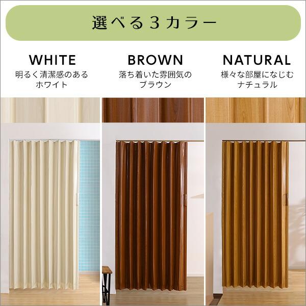 【素材】ドア・レール:塩化ビニル樹脂【商品サイズ】幅100×高さ174p【商品重量】約3kg【梱包サイズ】幅11×高さ186×奥行6.8p【梱包重量】約3.4kg【生産国】中国【カラー】ホワイト、ナチュラル、ブラウン【その他】レール取付>> 幅150cmはこちら >> 幅200cmはこちら