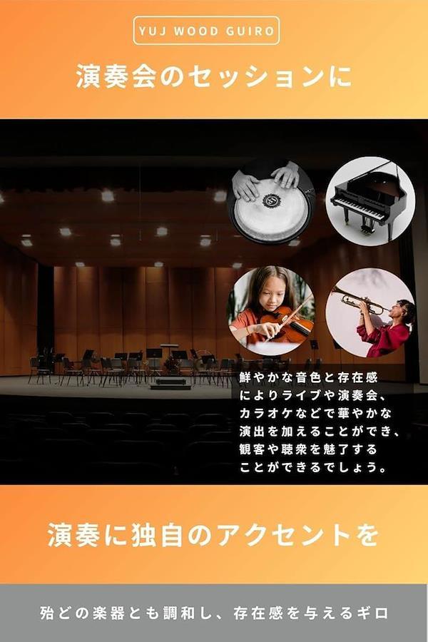 ギロの音は、他の打楽器との組み合わせによって、音楽的なアクセントを加えることができます。