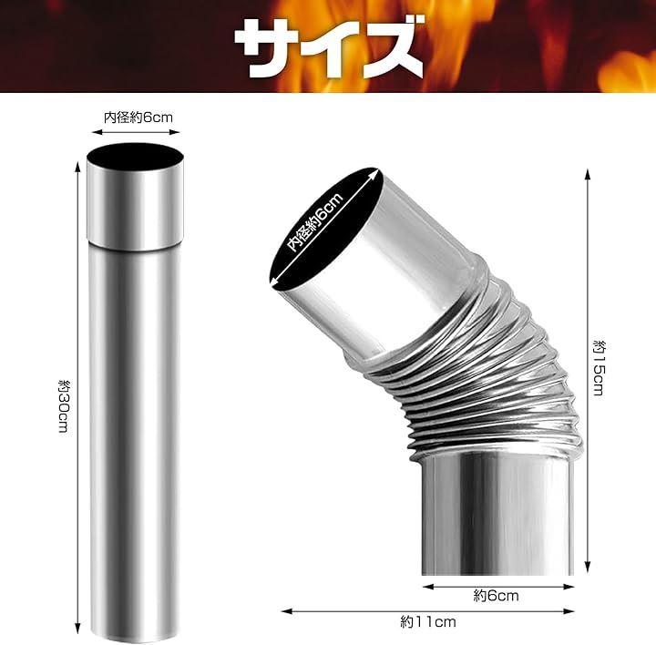 内径約6cmの設計で、さまざまな薪ストーブやキャンプ用薪ストーブに対応可能です。