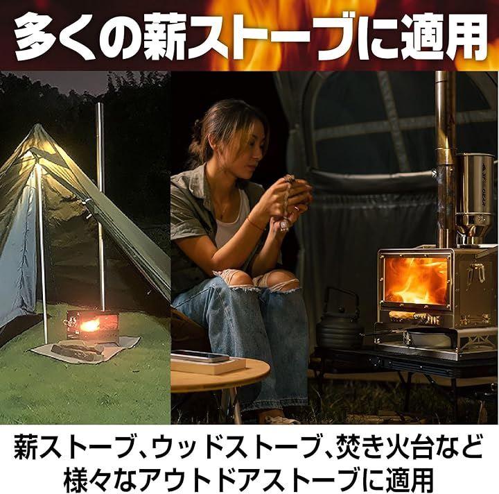 キャンプ用品煙突としても使用でき、屋外での薪ストーブ使用時に便利です。