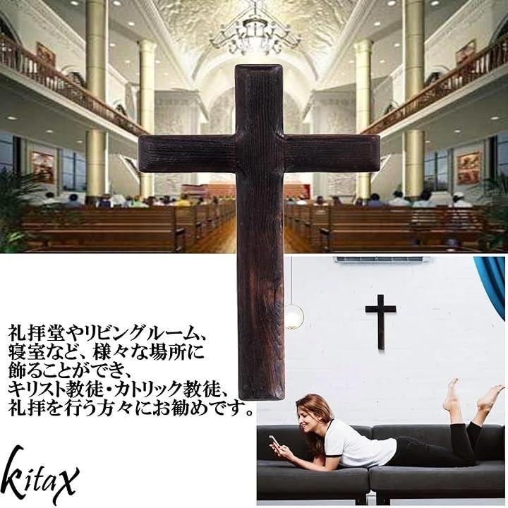 キリスト教の象徴である十字架をモチーフにしたデザインで、木のぬくもりとブラックの色合いが調和し、シンプルで落ち着いた雰囲気を演出。