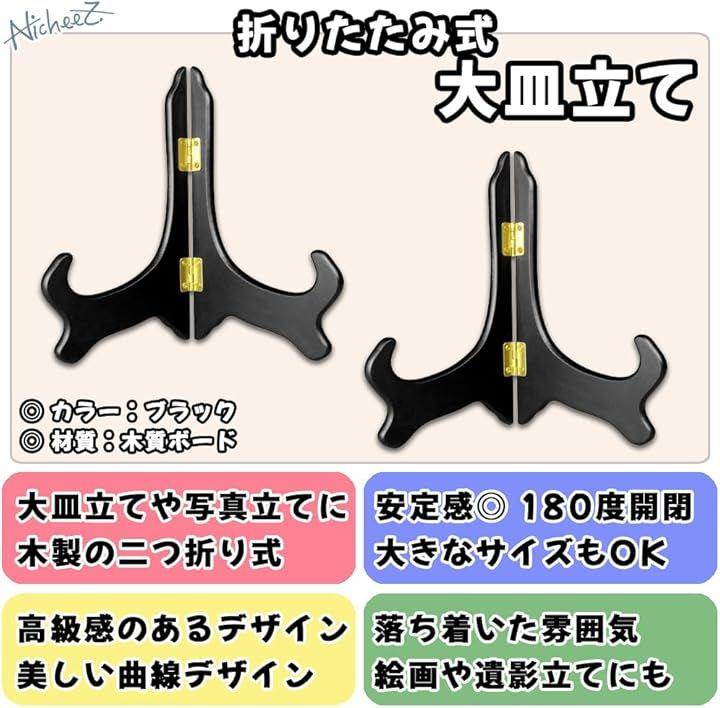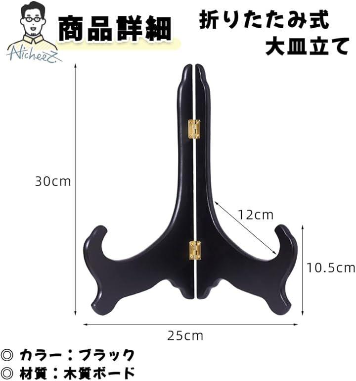 「商品内容」 折りたたみ式大皿立て 材質:木質ボード カラー:ブラック サイズ:幅/約25cm 高さ/約30cm