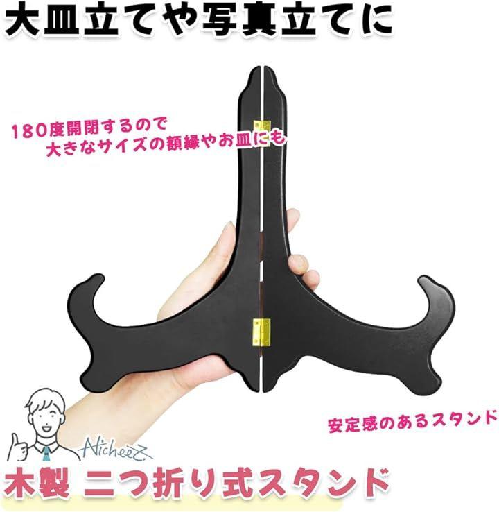 「大皿立てや写真立てに」二つ折り式の木製のディスプレイスタンドです。