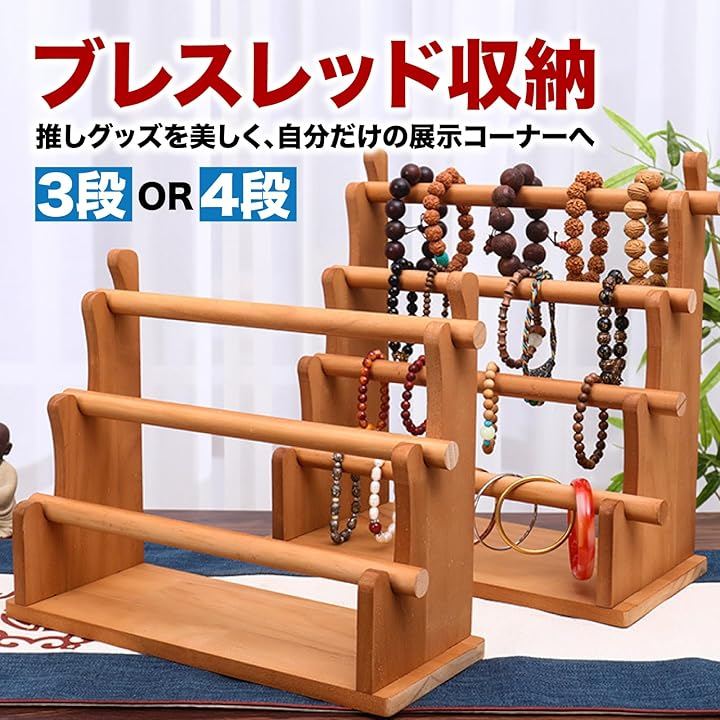 「イベントや物販風に、たっぷり飾れる段々設計」 3段・4段の選べるボリュームで、ラバーバンドやシュシュなどのコレクションを一度に展示できます。