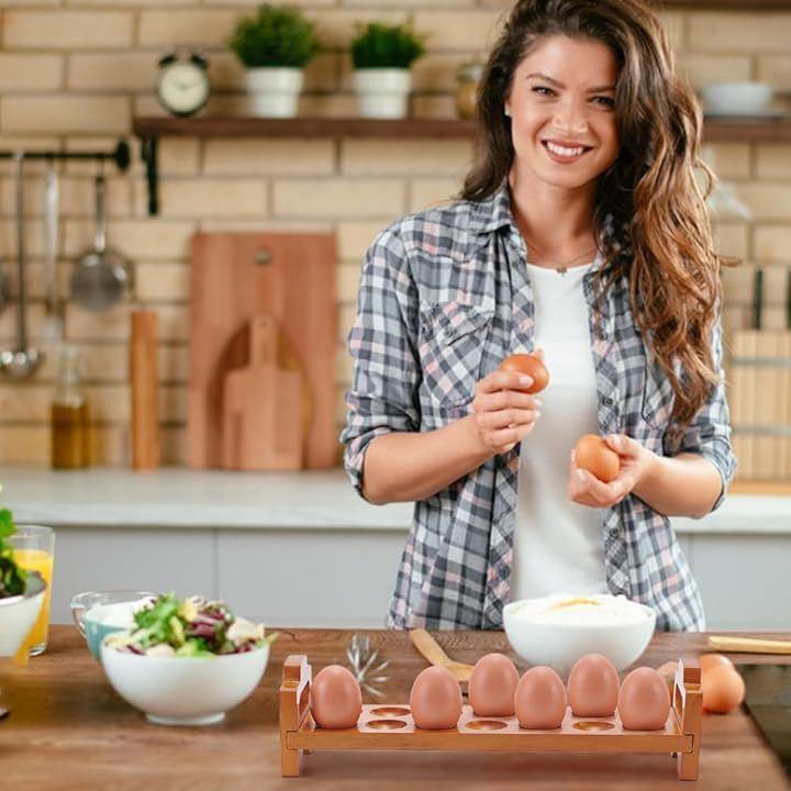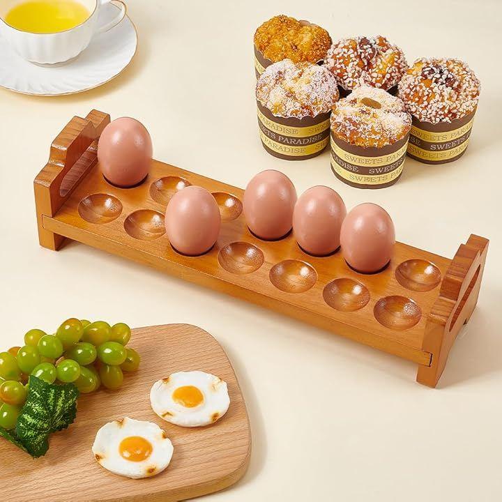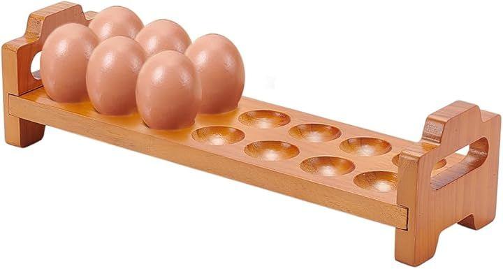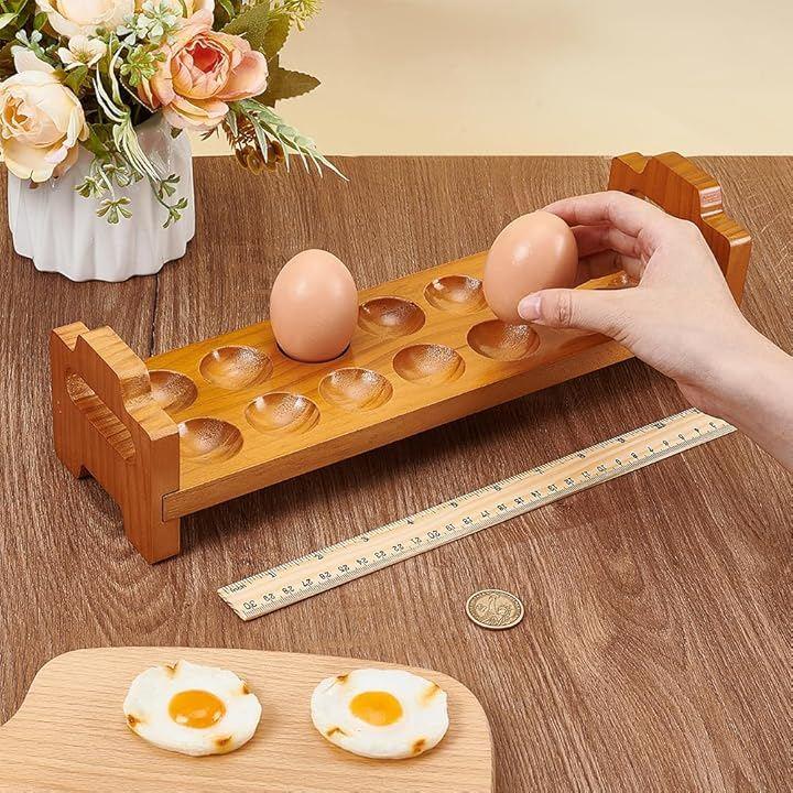 Wooden Egg Tray, Holds 14 Eggs, Egg Stand, Egg Case, Egg Case for Fresh Egg Storage, Farmhouse Refrigerator Storage, Kitchen Decor