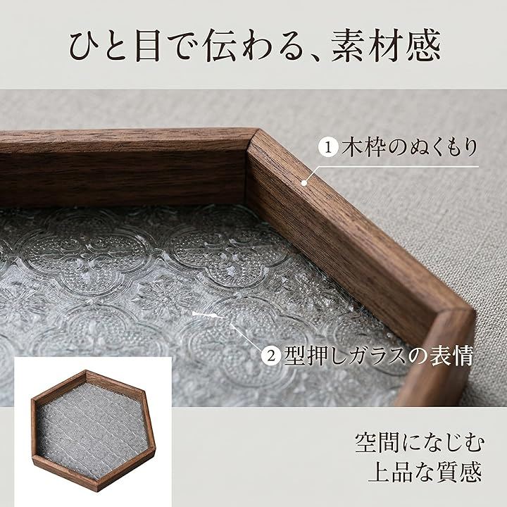 木枠x型押しガラスの上品な佇まい 木のぬくもりを感じるフレームと、模様のある型押しガラスを組み合わせたデザイン。