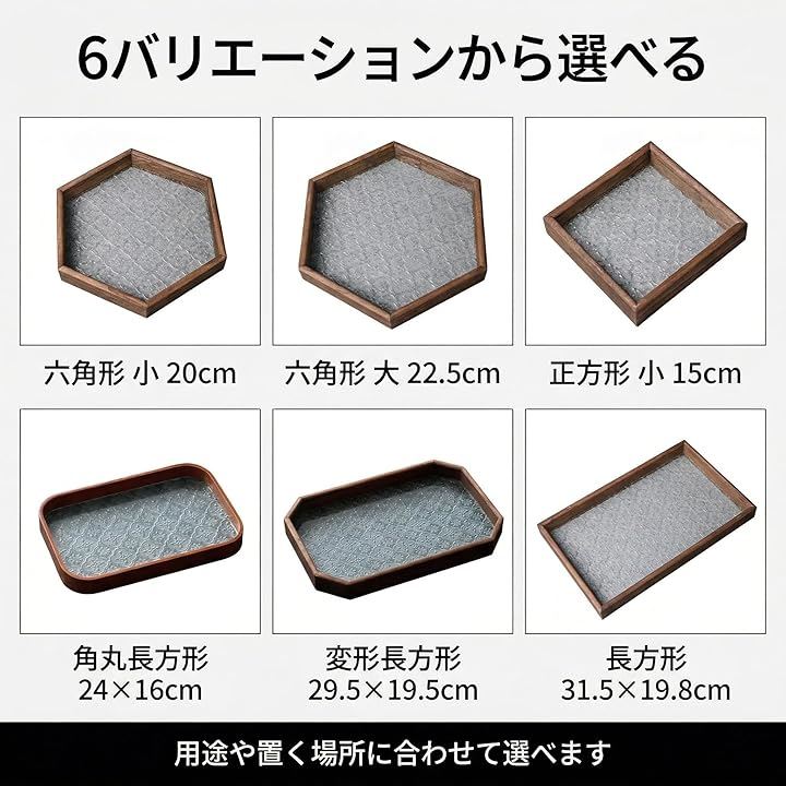 置く場所に合わせて選べる6バリエーション 六角形、正方形、長方形など、形状違いの6タイプ展開。