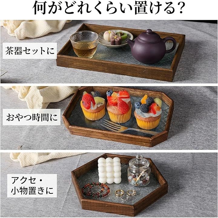 小物置きからお茶時間まで使いやすい アクセサリー、鍵、時計などの定位置づくりに加え、茶器やお菓子をまとめるトレーとしても使いやすい形です。