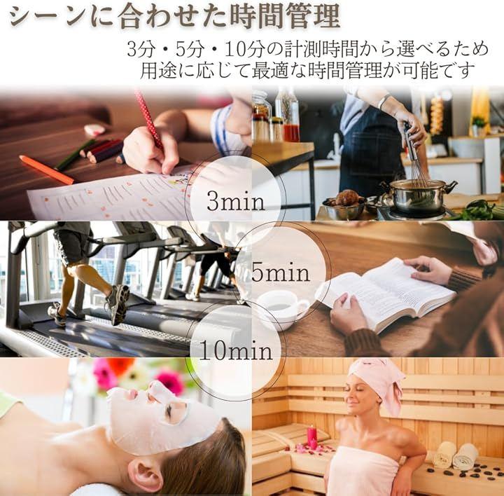 歯磨きやお片付け、着替えなど時間をイメージしにくいお子様にも効果的で、サウナやスポーツジム、読書、料理、化粧パックの時間管理にも最適。