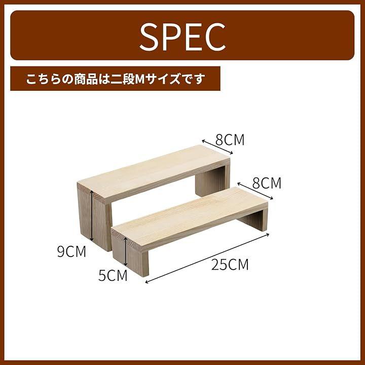 設置スペースや飾りたい物の大きさに応じて選べる、幅25cmのMサイズと幅35cmのLサイズの2種類をご用意しました。