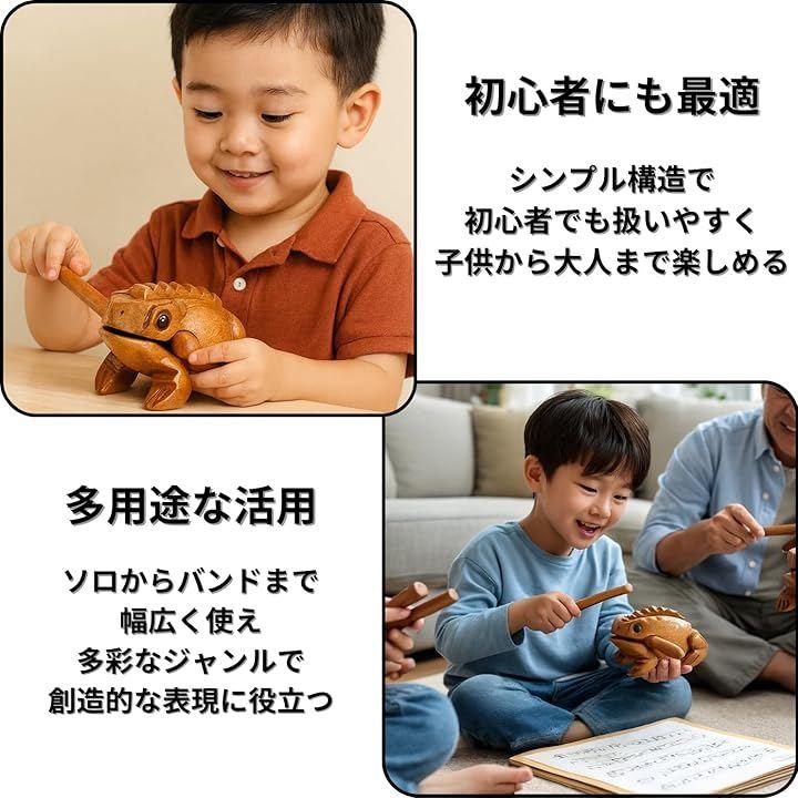 「ユニークな音色」このパーカッション楽器は、独特の鳴き声のような音を生み出し、演奏に新しい風を吹き込みます。