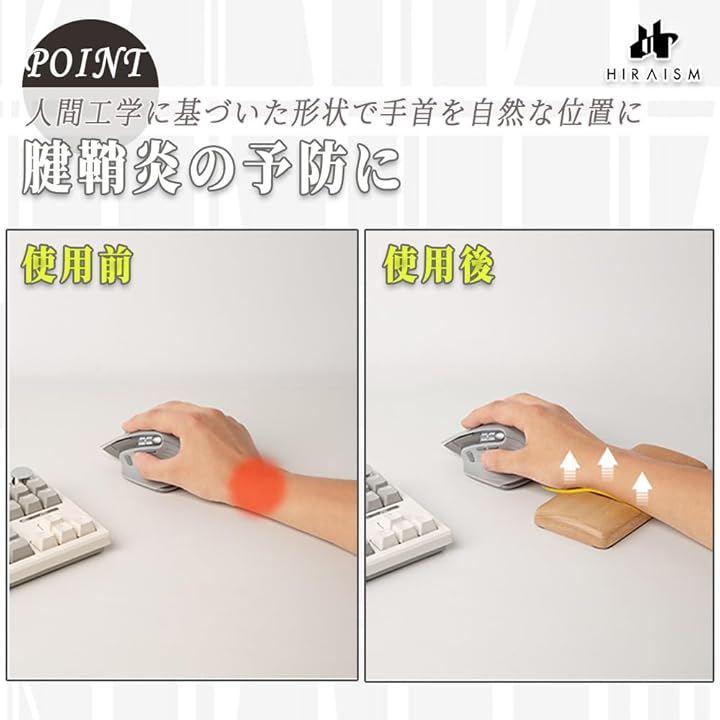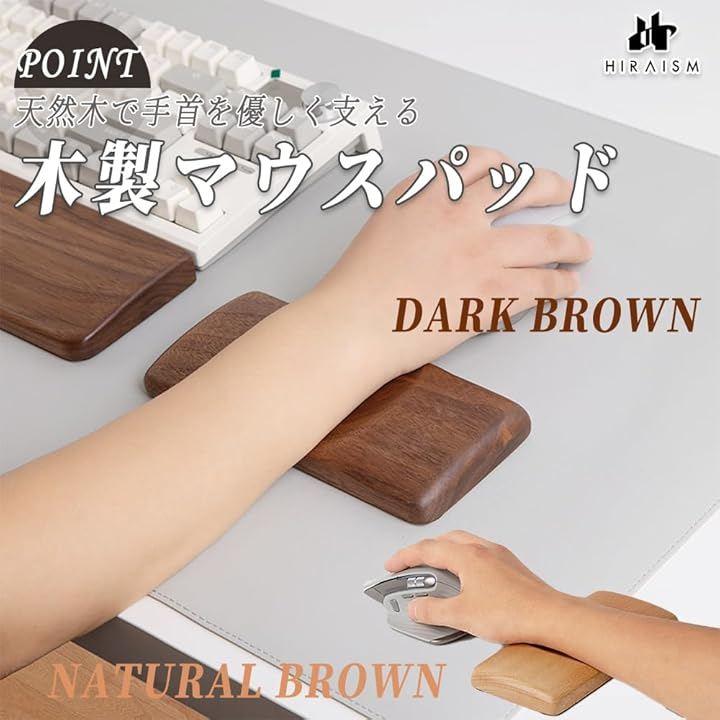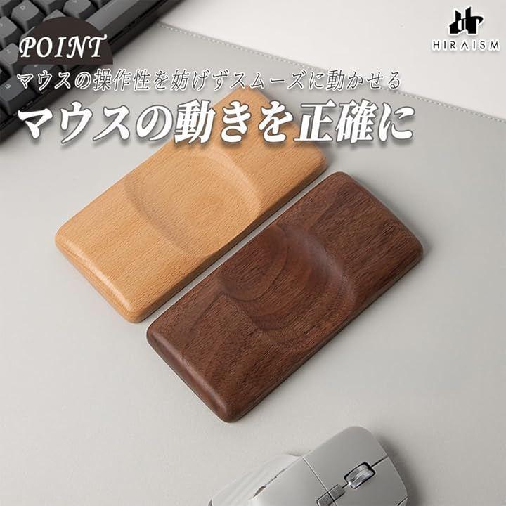 「天然木で手首を優しく支える」天然の無垢材を贅沢に使用した一体型マウスパッド。