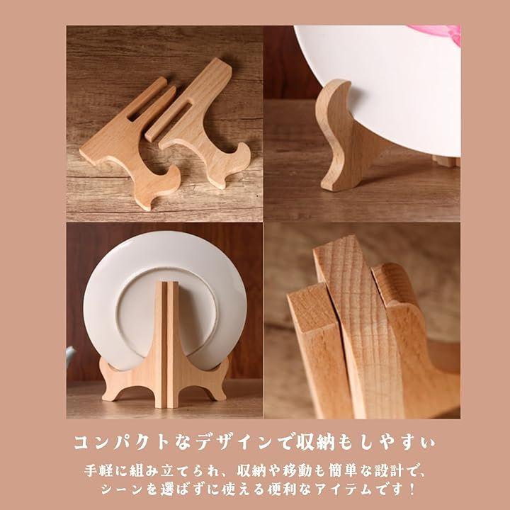 木製皿立てスタンドは、飾り皿や写真立てを美しくディスプレイするための卓上アイテムです。