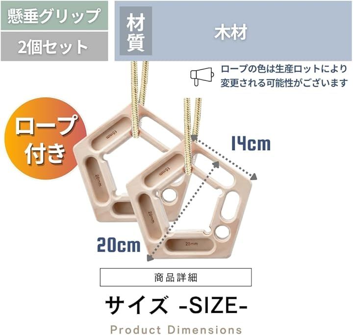 「商品内容」パッケージ内容: グリップ2個セット(ロープ2本付属) サイズ(約): 20cmx20cmx8cm 主な材質: 木材 *サイズ詳細は商品画像をご確認ください。