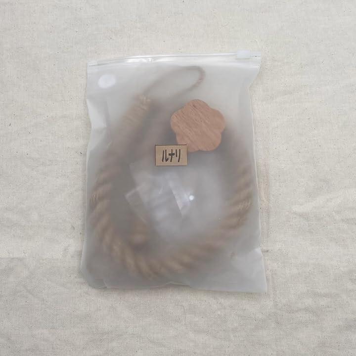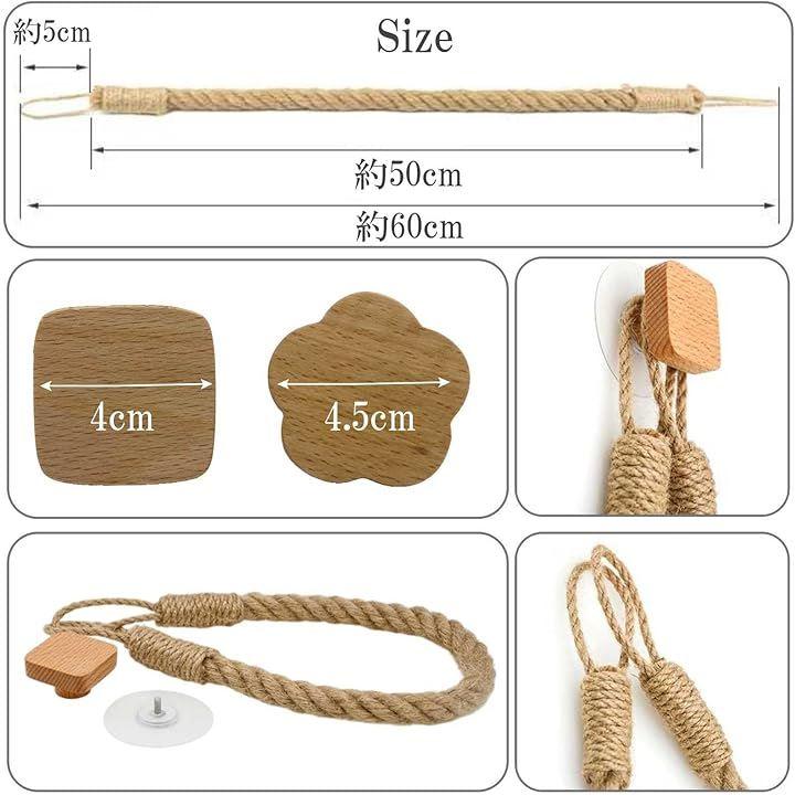 「サイズ:ロープ全長約60cm」「素材:麻縄、木製」*お使いのデバイスやモニター設定または商品撮影の際の照明・日光による光の当たり具合によりカラーが実際の商品と異なって見える場合がございます。