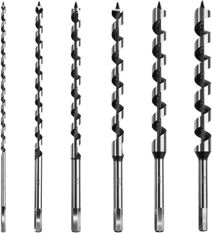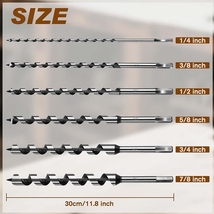 「セット内容」本木工用ドリルビットセットは6サイズ(1/4インチ、3/8インチ、1/2インチ、5/8インチ、3/4インチ、7/8インチ)を収録し、全長12インチ。