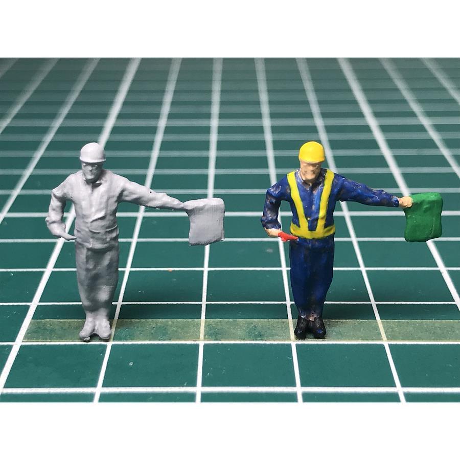 Railroad worker figure Pose C unpainted x 2 pieces