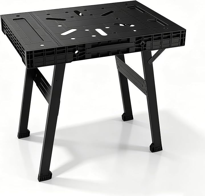 Workstation, Folding Workbench, Portable Work Table, Multifunctional Sawhorse, Load Capacity Approx. 450kg, Black