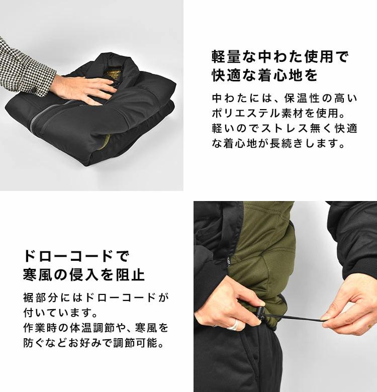 中わたには保温性の高いポリエステル素材を使用しています。軽量なのでストレスを感じず着用することができます。