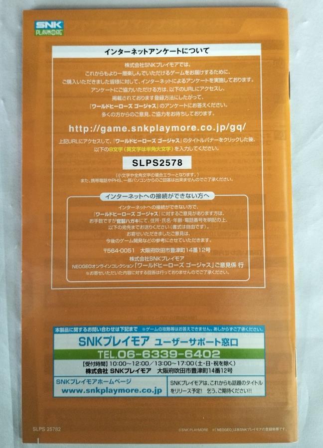ワールドヒーローズ ゴージャス SLPS-25782 SNK プレイステーション2ソフト SNKSLPS-25782ワールドヒーローズ ゴージャス■付属品は写真の物で全てとなります