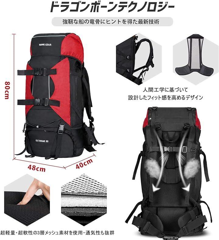 登山、アウトドア、海外旅行など様々な場面で活躍する大容量80Lのバックパックです。