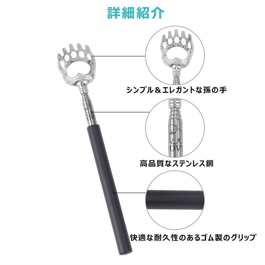 【痒い所に手が届く】届きそうで届かなかったもどかしさが一気に解消!背中の痒みが一発で治まります! 【肌を傷つけない】先端は尖っておらず丸みがあり、木製と違ってとてもなめらかです。手の先の形状も肌を傷をつけることなく、力を入れずに掻けば最低限のダメージで済むことができます。 【コンパクトで便利】[収縮時]約22cm [伸長時]約58cm [重さ]53g、伸縮自在なまごのては簡単にポケットとカバンの中に入られます、旅行にも簡単に持ち運びます。 【プレゼントに最適】家族や友人や先輩への贈り物 誕生日 記念品などプレゼントとしてにも最適です。 【3ヶ月品質保証】この商品は出品前に厳しい検査を行いましたので、ご安心に使えます。3ヶ月以内で品質問題が発生した場合、アマゾンの購入履歴より弊社までご連絡ください。返金や交換などの対応をさせていただきます。