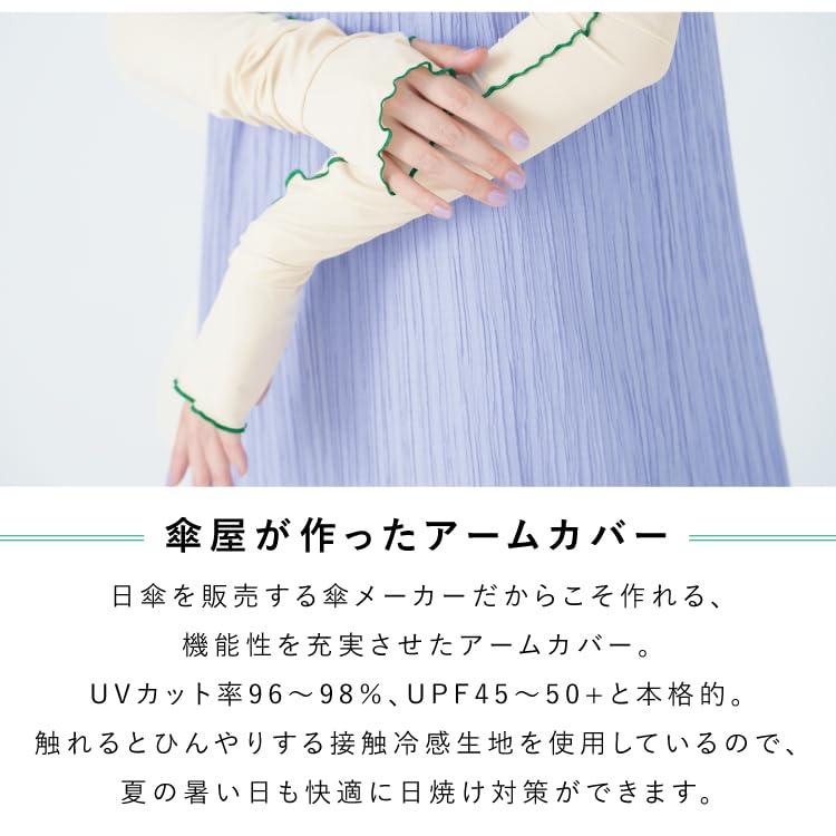 【傘屋が作った、アームカバー】接触冷感アームカバー 腕にサッと通すだけで手軽に日焼け対策が可能。 ちょっとしたお出かけやお散歩、小さなお子様のいる方にもおすすめです。 薄くて軽い生地なので鞄に入れてもかさばらず、持ち運びにも便利です。 日傘を販売する傘メーカーだからこそ作れる、機能性を充実させたアームカバー。 UVカット率96~98%、UPF45~50+と本格的。 触れるとひんやりする接触冷感生地を使用しているので、夏の暑い日も快適に日焼け対策ができます。 どんなコーディネートにも合わせやすいベーシックなカラーとシンプルなデザインです。 パッケージ付きなのでプチギフトとしても♪ ≪日常使いに嬉しい機能が満載≫ ・接触冷感生地 触れるとひんやり涼しい接触冷感生地を使用。夏の暑い日でも快適にお過ごしいただけます。 ・手の甲までカバー 指穴付きで手の甲までカバーできるので、自転車や車の運転時に日焼けしがちな手の甲も日差しから守ります。 ・二の腕までぴったりフィット 全長70cmのロング丈なので、二の腕までしっかりカバーできます。 Tシャツと合わせれば、腕全体の日焼け防止が可能。 洗濯機で洗えます。 ※洗濯ネットをご使用ください。 ご使用になる前に製品に付属しているご使用上の注意をお読みください。 おしゃれ オシャレ かわいい 可愛い 日焼け 紫外線 防止 予防 対策 接触冷感 涼しい 通勤 通学 学生 社会人 女性 レディース 自転車 ガーデニング ピクニック お出かけ アウトドア フェス [Wpc. / ダブリュピーシー] 国内売上TOP。 進化を続ける傘ブランド。 「Wpc.」は『新たな可能性を生み出す』をスローガンに2004年に誕生した日本発のレイングッズブランド。 様々な世代やジャンルの方に傘を持つことへの美意識を発信し続けます。 そして雨の日も晴れの日も幸せを感じてもらえる製品をお届けします。 0 【検査機関】一般財団法人 日本繊維製品品質技術センター(発行日:2024年6月20日) (#lf)(#lf)(#lf)商品購入前に、ストア紹介ページをご確認ください。