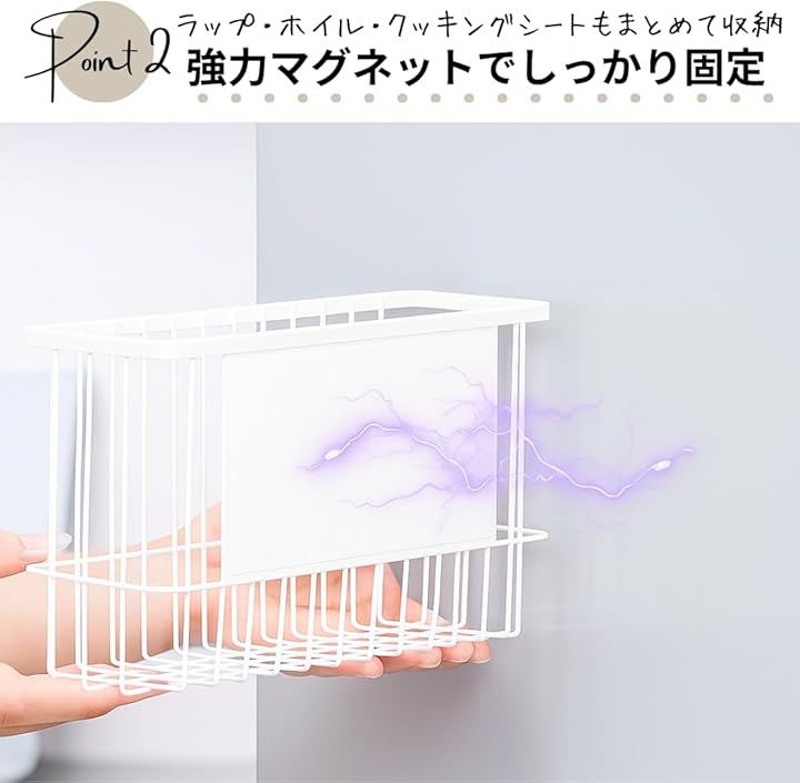 「まとめておけば、使いたい時に、サッと取れる」強力マグネットでしっかり固定できるラップホルダー。