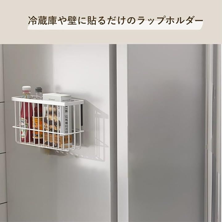 「デッドスペースを収納に」マグネットで冷蔵庫や壁に貼るだけのラップホルダー。