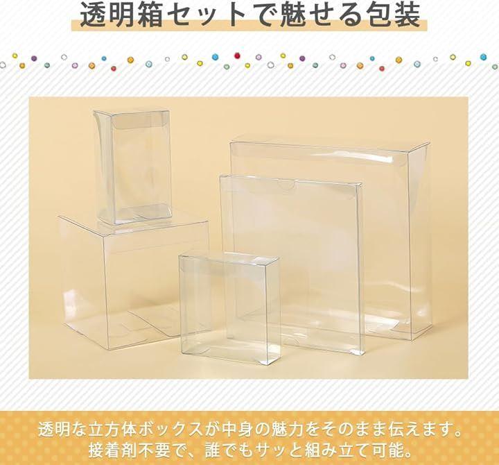 「透明箱セットで魅せる包装」透明な立方体ボックスが中身の魅力をそのまま伝えます。