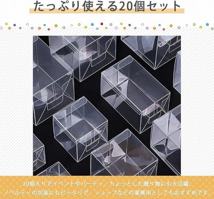 「商品詳細」ギフトボックス20個セット、入数:20個、サイズ:画像参照、カラー:透明、素材:プラスチック