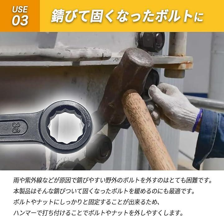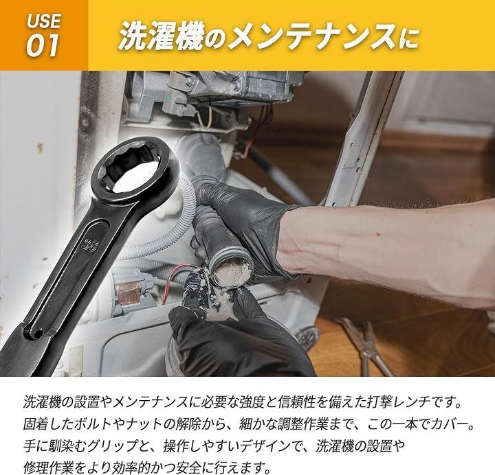 洗濯機の設置やメンテナンスに必要な強度を備えた打撃レンチです。